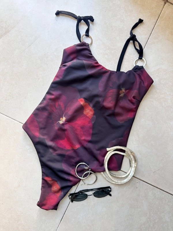 ENTERIZA FLORAL NEGRA CON ARGOLLA